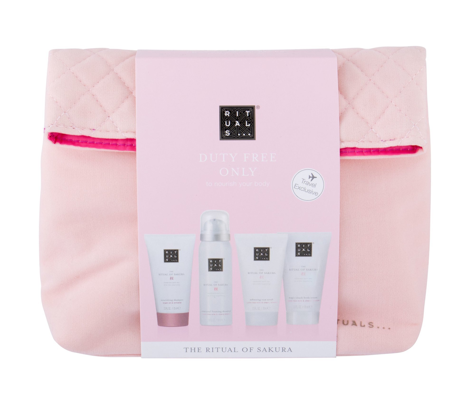 Rituals The Ritual Of Sakura šampon 70 ml + sprchová pěna 50 ml + sprchový peeling 70 ml + tělový krém 70 ml + kosmetická taštička