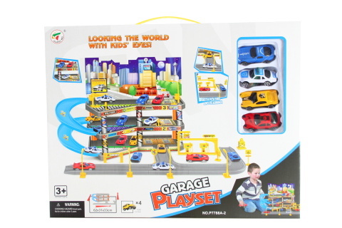 Garáž o velikosti 62 x 31 x 33 cm. Součástí balení jsou 4 autíčka. Rozměr balení cca 45,5 x 35 x 6 cm. Věk 3+ przeczytaj całość