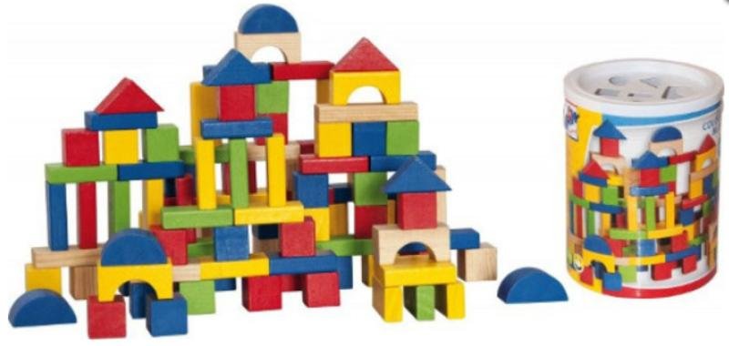 Ten solidny i kolorowy zestaw drewnianych klocków zawiera w sumie 100 elementów różnych rozmiarów, które można dowolnie układać i łączyć. Dziecko może tworzyć coraz to nowe kształty, co zapewnia niekończącą się zabawę i rozwija umiejętności logicznego myślenia.