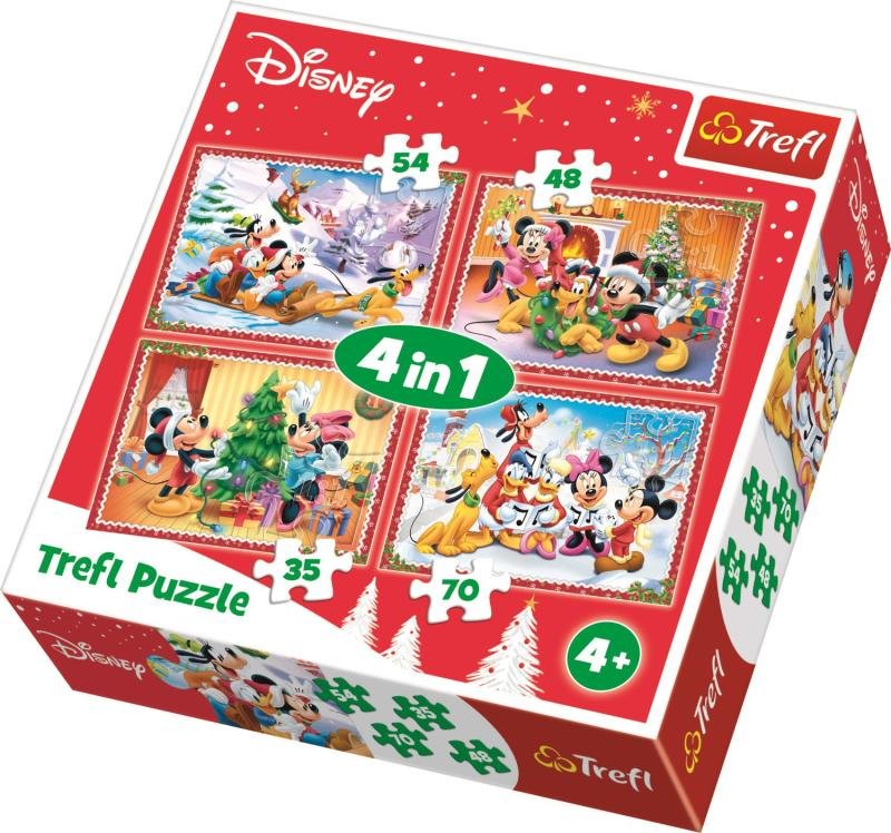 Progresivní dětské puzzle - TREFL - Vánoce u Mickey Mouse 4v1 (35 + 48 + 54 + 70 dílků) przeczytaj całość