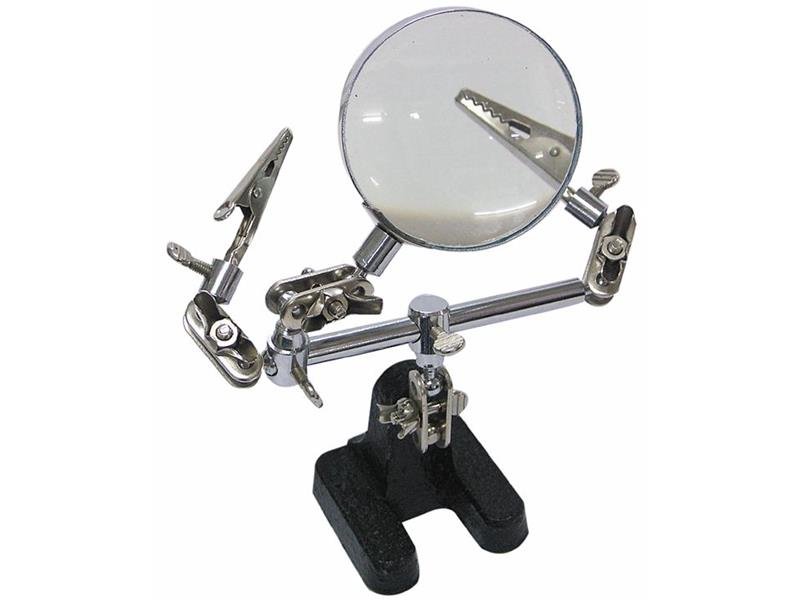 Uchwyt do płytek drukowanych z lupą 46 mm zawiera 8 przegubów i 2 zaciski do mocowania.