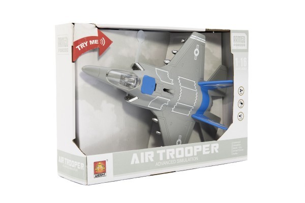 Letadlo/stíhačka plast 31cm na baterie se světlem se zvukem v krabici 32x22,5x9cm