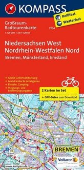 Kompass Großraum-Radtourenkarte Niedersachsen West, Nordrhein-Westfalen Nord, 2 Bl.