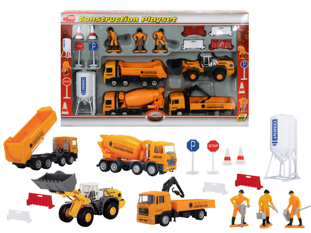 Sada stavebních aut na volnoběh obsahuje 4 vozidla, 3 figurky a spoustu nezbytného příslušenství. Velikost aut cca 15 cm. przeczytaj całość