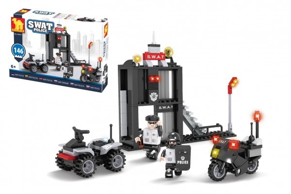Kostky stavebnice Dromader Stanice swat policie 146 dílků v krabičce 22x15x4,5cm