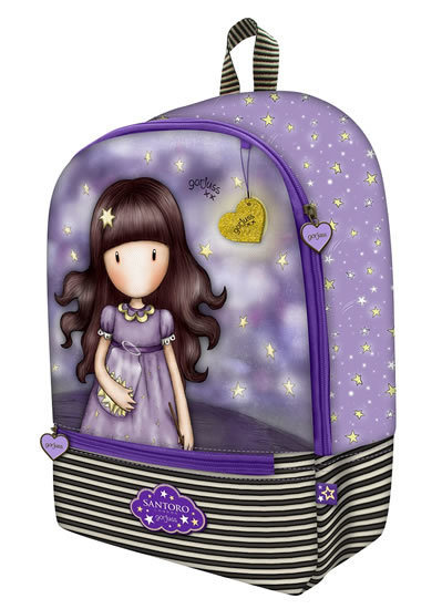 Tento školní batoh má celkem dvě komory, které mají pouze jeden hlavní prostor. Zadní komora má vyztužené dno, dvě našité kapsy např. na mobil a jednu kapsu na zip. Obě dvě komory se uzavírají na dvoucestný zip. Všechny zipy jsou ozdobeny přívěskem. Záda batohu jsou polstrovaná, stejně jako...