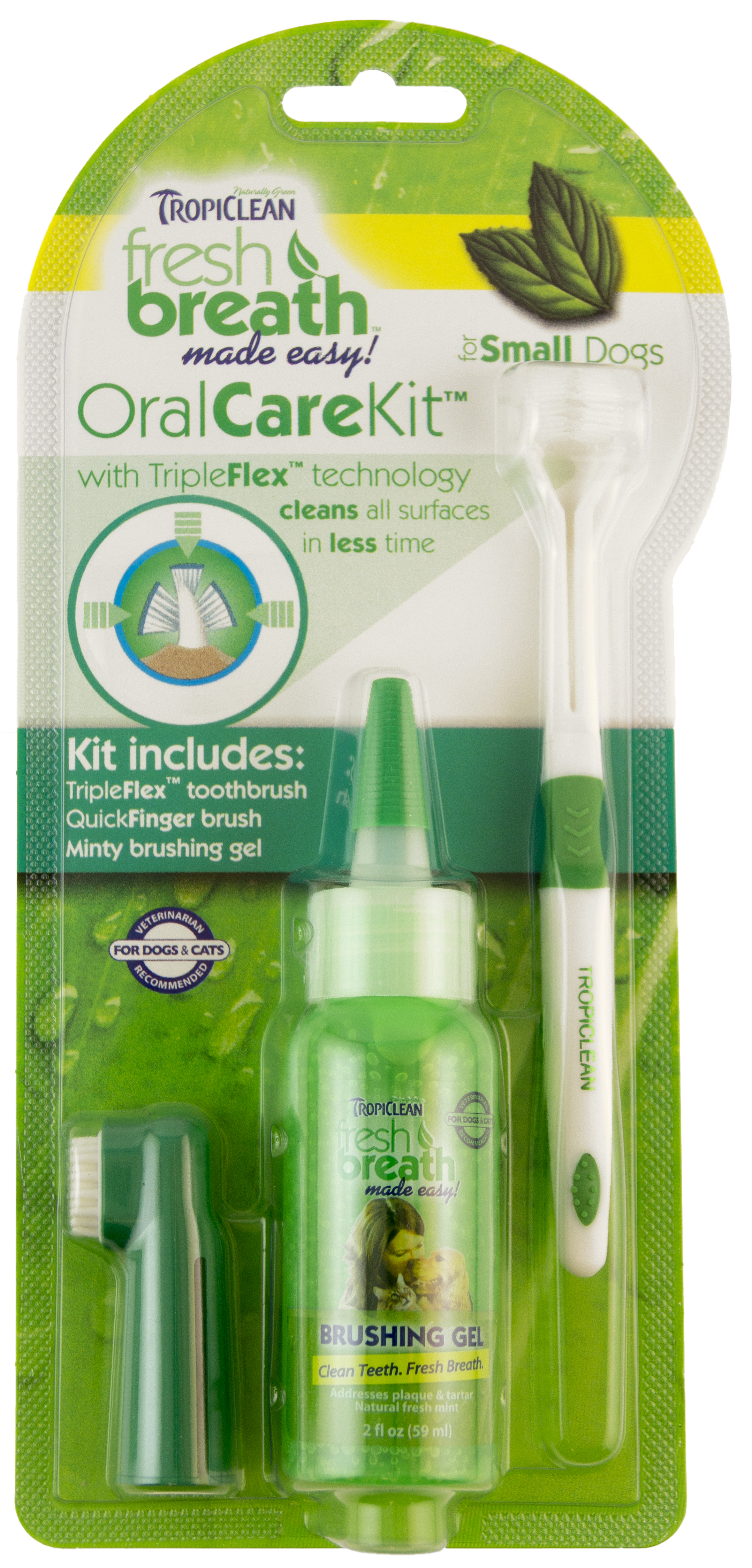 Sada na zubní péči pro psy. Použití: čistěte zuby jednou denně po dobu 30 dní. Podle toho co víc pejskovi vyhovuje, použijte TripleFlex kartáček nebo kartáček na prst Quick finger. Dejte malé množství gelu na kartáček a dejte pejskovi ochutnat. Čistěte jemnými krouživými pohyby. Nikdy...