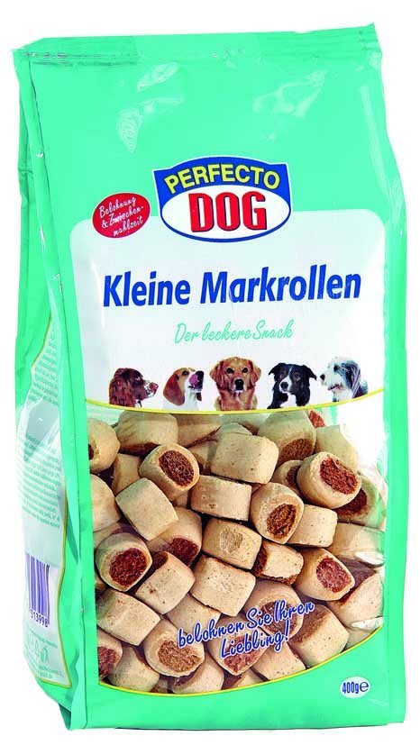 Podaruj swojemu psu to, co najlepsze jako smakołyk! Perfecto Dog ciasteczka małe Markrollen 400 g są idealną przekąską dla wszystkich psiaków, które zasługują na zdrową i smaczną nagrodę.