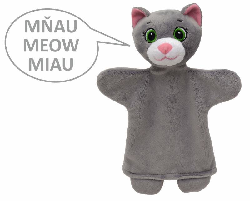 Tekstylna pacynka, po naciśnięciu brzuszka miauczy jak kotek. Można prać bez modułu dźwiękowego. Wymienne baterie 3x LR44 są w zestawie. Cena włącznie z PHE. Zalecany wiek: od 1 roku, CE przeczytaj całość