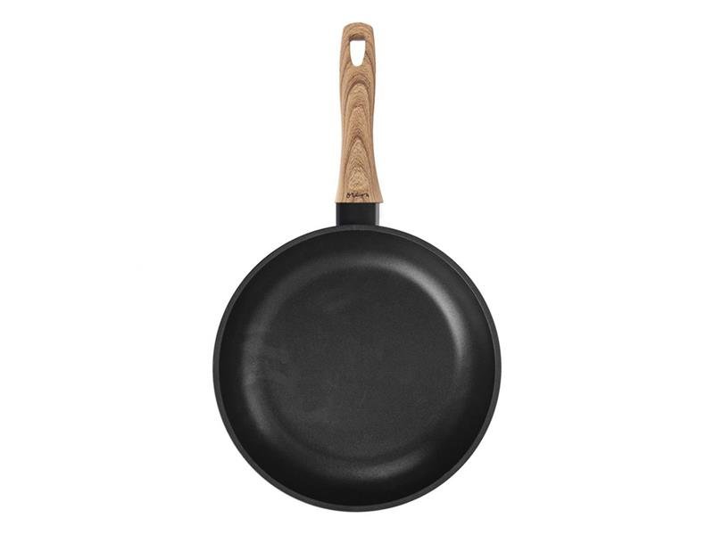 Odlévaná masivní pánev s velmi kvalitním nepřilnavým povrchem. Můžete na ni smažit, dusit, opékat s minimální potřebou tuku. Materiál: hliník s povrchovou úpravou - uvnitř pánve je 2vrstvý nepřilnavý povrch, vně vrstva PTFE, bakelit. Možnost zavěšení. Rozměry: pr. 24 cm, v. 5 cm. Vhodná na...