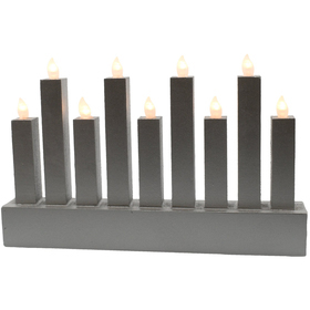 Svícen 9 LEDBarva světla: teplá bíláMateriál MDF + PlastStříbrná barvaNapájení 3xAAČasovač: 6/18 hRozměry: 25 x 3 x 16 cm przeczytaj całość