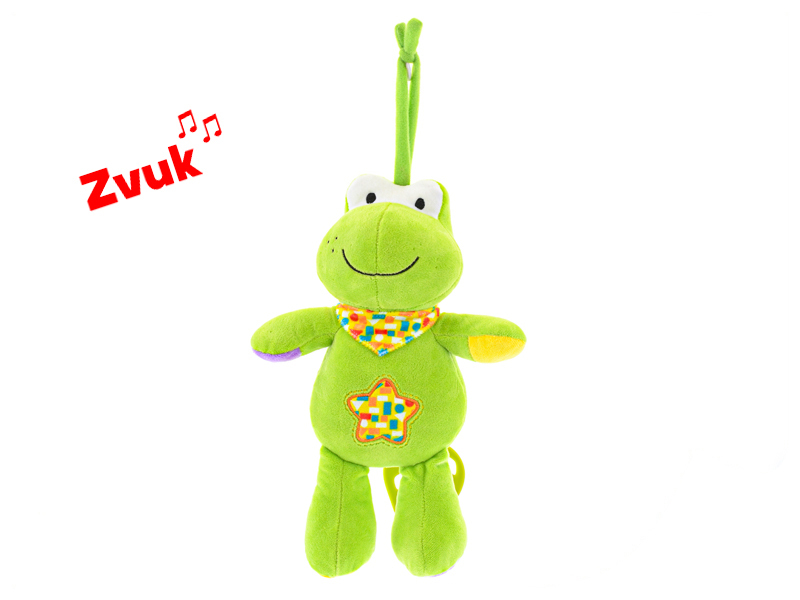 Plyšová žabka s hracím strojkem na natažení pro děti již od narození. Žabka o velikosti 30cm je vhodná jak pro chlapečky i holčičky. Žába má šňůrku na zavěšení nad postýlku a po natažení vydává příjemnou melodii. przeczytaj całość