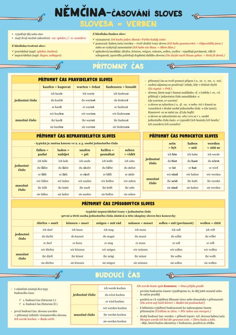 Laminowana karta przeznaczona przede wszystkim dla uczniów szkół podstawowych i średnich oferuje graficznie przejrzyste i zwięzłe przedstawienie odmiany niemieckich czasowników. Znajdziesz tu przegląd wszystkich końcówek i zasad we wszystkich osobach w różnych czasach. przeczytaj całość