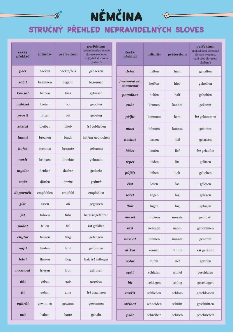 Němčina – Nepravidelná slovesa (czeski)