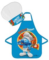 Dětská zástěra ŠMOULOVÉ set s čepicí modrý
