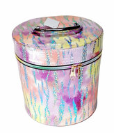 Kuferek okrągły 20x22.5cm wzór holo, odcienie różu, pomarańczy