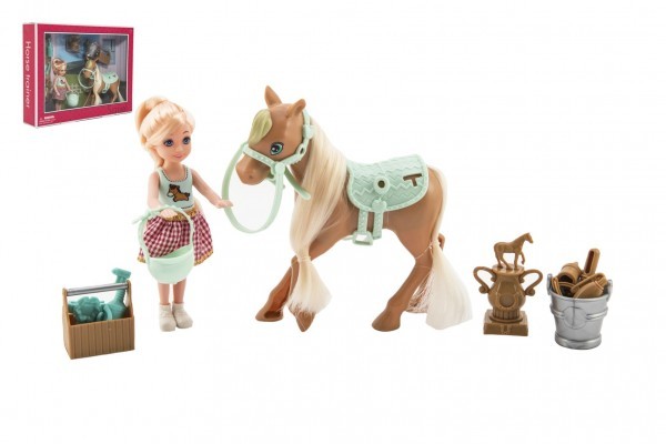 Všechny malé milovnice koní potěší panenka s koníkem, který má dlouhou hřívu a ocas. Kůň má krásnou hustou a dlouhou hřívu a ocas, které jsou vhodné i k česání. Sada obsahuje spoustu doplňků, které jsou potřeba při péči o koně. Kůň má na sobě sedlo a uzdu. Vyrobeno z kvalitních a odolných materiálů.