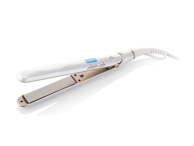 Umocněte svou přirozenou krásu dokonale rovnou hřívou vytvořenou pomocí žehličky na vlasy ETA Fenité 9336 90000 o příkonu 45 W. Tento elegantní pomocník vám propůjčí okouzlující vzhled, ať už jste doma, nebo na cestách. Úprava vlasů je jednoduchá a pohodlná, napomáhá tomu zejména povrch z keramiky, kterým je žehlička ETA opatřena. Keramický povrch dovoluje destičkám o velikosti 25 × 110 mm lehce klouzat po vlasech. Díky svému odpružení navíc perfektně přilnou k vlasům a narovnají je rychleji. Žehlička ETA Fenité je opatřena PTC topnými tělesy, které umožňují její velmi rychlé zahřátí. Nastavení teploty můžete volit dle typu vlasů a jejich poddajnosti v teplotním rozsahu od 150 do 230 °C. Regulace probíhá elektronicky pomocí tlačítek + a − v krocích po 10 °C. Aktuální nastavení zobrazí přehledný LED displej. Manipulaci s žehličkou usnadňuje dostatečně dlouhý 1,69metrový napájecí kabel. Navíc je otočný a poskytne vám tak dostatečnou volnost pro pohodlnou úpravu vlasů. Praktické poutko umožňuje zavěšení žehličky pro zchladnutí nebo uložení, aby byla vždy po ruce.