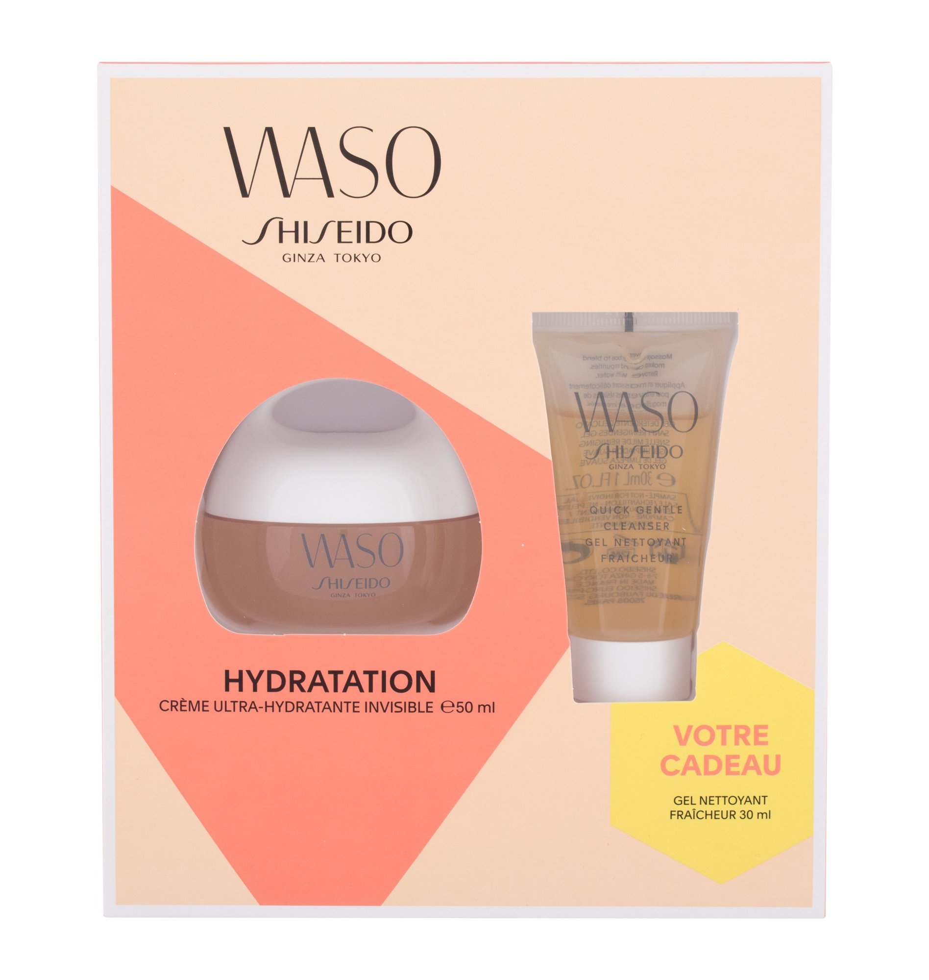 Shiseido Waso denní pleťová péče Waso Clear Mega-Hydrating Cream 50 ml + čisticí gel Quick Gentle Cleanser 30 ml + pleťová maska Waso Sleeping Mask 1,5 ml