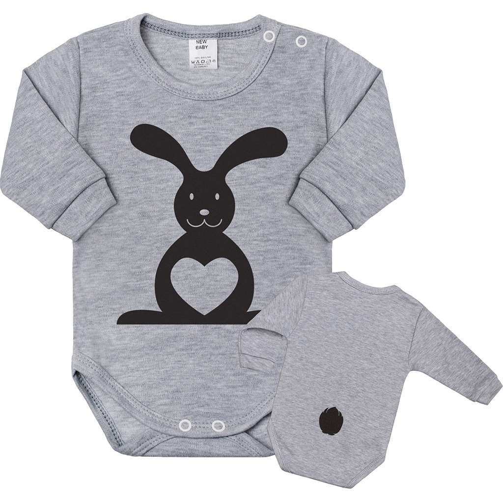 Kojenecké body s dlouhým rukávem New Baby Zvířátko Zajíček šedé - velikost 56 (0-3m)