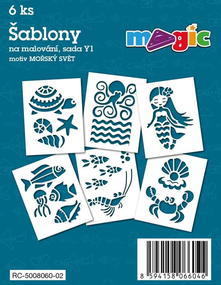 Papírové šablony MAGIC, 11 x 14cm, 6ks, sada Y1 - Mořský svět