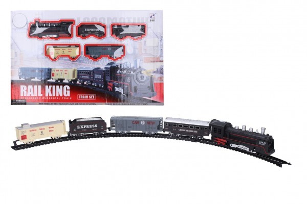 Vlak + 4 vagony s kolejemi plast 103,5x67,5cm na baterie se světlem se zvukem v krabici 47x29x4cm