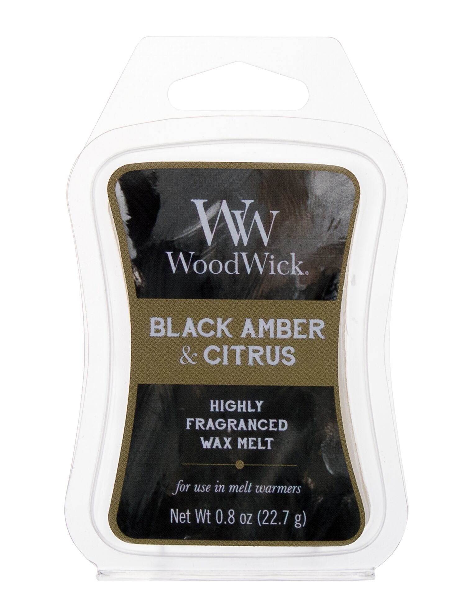 Vonný vosk WoodWick Black Amber & Citrus je vyrobený ze směsi prémiového parafínu a sójového vosku s vysoce koncentrovanými vůněmi.