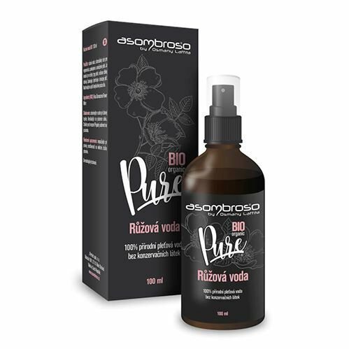 Růžová voda z damašské růže Asombroso Pure BIO Rosewater pro regeneraci, osvěžení a zklidnění pleti. 100% přírodní, BIO, RAW kvalita umožňuje používat růžovou vodu i do koktejlů, které se přidáním pár kapek stanou osvěžujícími a omamnými nápoji.