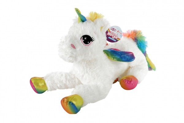 Roztomilý jednorožec ležící je vhodným mazlíčkem nejen do postýlky. Slouží dětem k mazlení, ale vytváří také dekoraci dětského království a citový vztah. Hračky z plyše jsou vhodné pro děti všech věkových kategorií, ale jsou oblíbené i u dospělých. Plyšák je vyroben z kvalitního a velmi příjemného plyše, který ohromí každého.