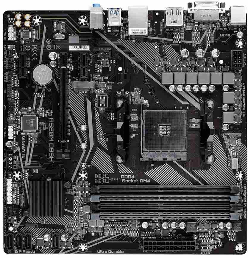 A520M DS3H (rev. 1.0)AMD A520 Motherboard with Pure Digital VRM Solution, High Quality Audio, GIGABYTE Gaming LAN with Bandwidth Management, PCIe 3.0 x4 M.2, RGB FUSION 2.0, Smart Fan 5, Q-Flash Plus, Pre-installed IO Shield DesignSupports 3rd Gen AMD Ryzen™ ProcessorsDual Channel ECC/ Non-ECC...