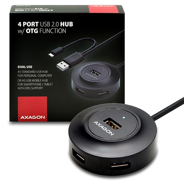 AXAGON HUE-X6GB, 4x USB2.0 hub, 80cm kabel + micro USB OTG, černý