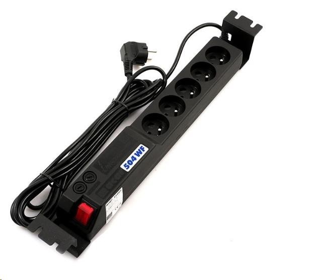 19\" rozvodný panel ACAR 5x230V, ČSN, kabel 3m, přepěťová ochrana, vč. montážních držáků do racku