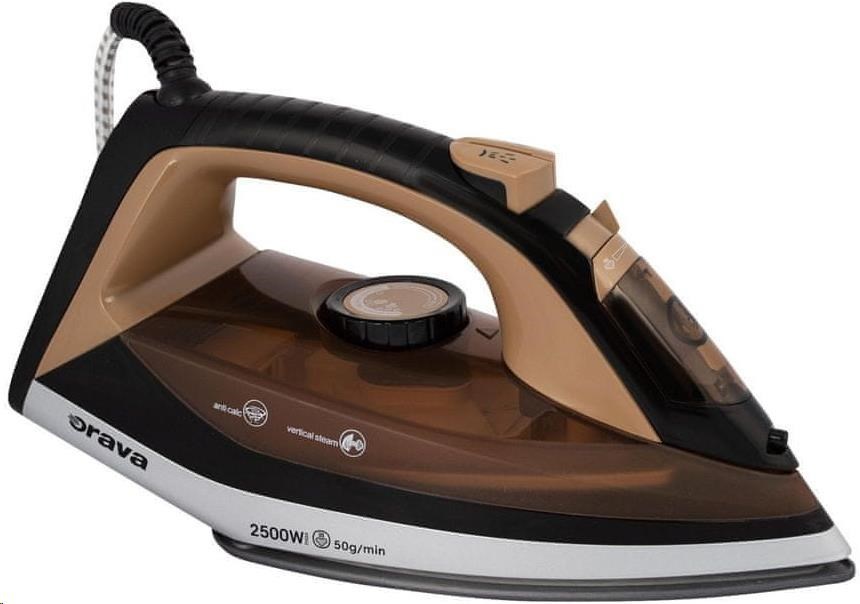 Elektrická napařovací žehlička, Výborná klouzavost teflonové žehlící plochy, Vysoká odolnost vůči otěru, Dokonalý rozptyl páry při žehlení, Možnost napařování ve vertikální poloze, Funkce samočištění Self-Cleaning, Samočistící funkce Anti-Calc, funkce kropení, Variabilní výstup páry až 50 g / min, Přívodní kabel v otočném kloubu, 200 ml nádržka na vodu, Napájení: 230 V ~ 50 Hz, 2 500 W