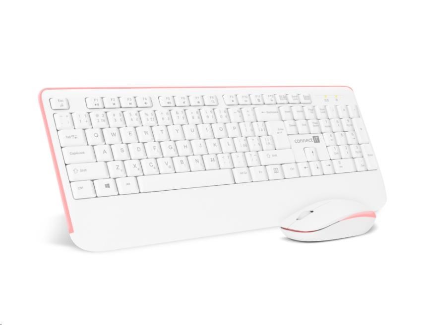 CONNECT IT Combo bezdrátová bílo-růžová klávesnice + myš, CZ + SK layout