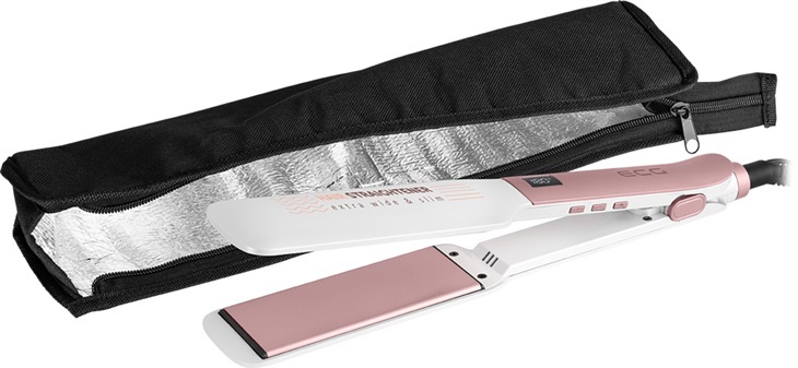 funkce ionizace, extra široké žehlicí plochy s keramickou úpravou, LED displej, nastavení teploty (120-210°C), kabel s otočnou koncovkou, příkon 60 W, přívodní kabel 1,8 m, praktické pouzdro przeczytaj całość