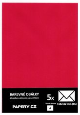 barevná obálka 114X162 ČERVENÁ SVĚTLÁ, 5 kusů, 100 gm2, olizová