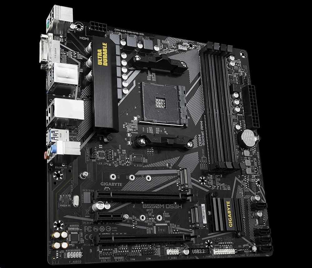 B550M DS3H (rev. 1.0)AMD B550 Ultra Durable Motherboard with Pure Digital VRM Solution, PCIe 4.0 x16 Slot, Dual PCIe 4.0/3.0 M.2 Connectors, GIGABYTE 8118 Gaming LAN, Smart Fan 5 with FAN STOP, RGB FUSION 2.0, Q-Flash PlusSupports 3rd Gen AMD Ryzen™ ProcessorsDual Channel ECC/ Non-ECC Unbuffered...