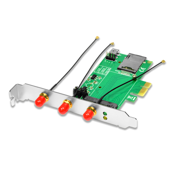 AXAGON PCEM-E3, PCIe - mini PCIe adaptér, SIM slot + 3x SMA konektor