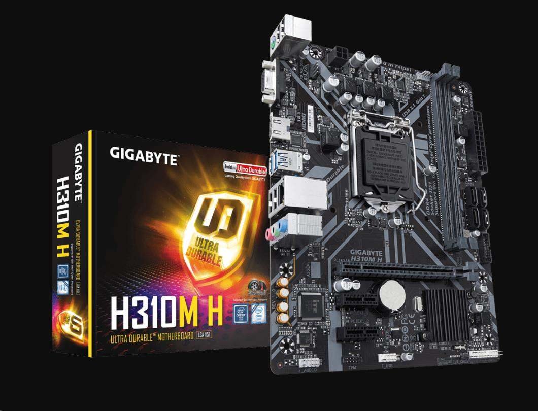 H310M H (rev. 1.0)Intel H310 Ultra Durable motherboard with GIGABYTE 8118 Gaming LAN, Anti-Sulfur Resistor, Smart Fan 5, CEC 2019 readySupports 8th Gen Intel Core™ ProcessorsDual Channel Non-ECC Unbuffered DDR48-Channel HD Audio with High Quality Audio CapacitorsGIGABYTE Exclusive 8118 Gaming LAN...
