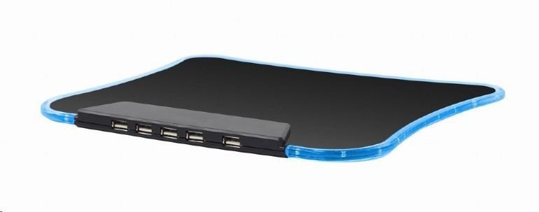 GEMBIRD Podložka pod myš, modré LED podsvícení, USB HUB, 4x USB 2.0