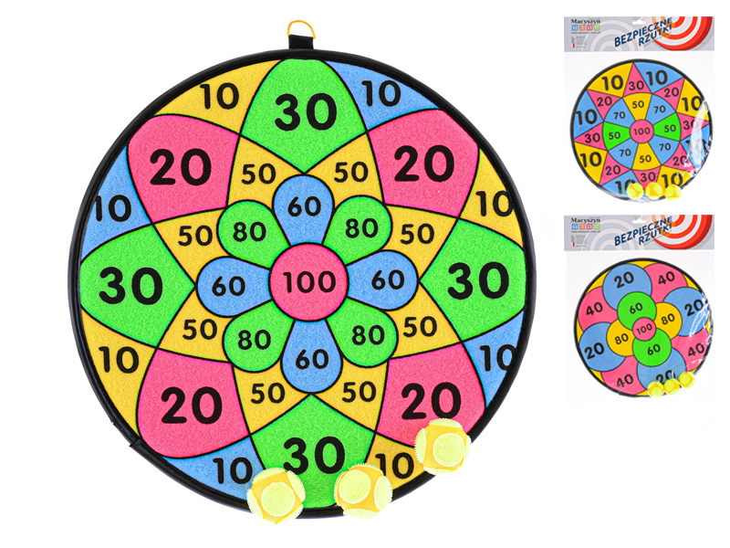 Terč na suchý zip 31cm +3 ks míčky v sáčku / 3 druhy
