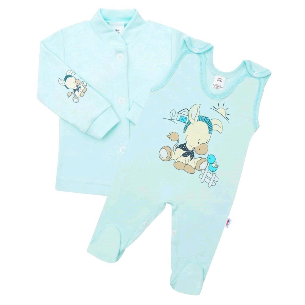 Bavlněná kojenecká soupravička New Baby Donkey pro miminka v krásné pastelové barvě. Soupravička obsahuje dupačky a kabátek, je vhodná pro miminka už od narození pro svou jemnost a měkkost. Dupačky jsou jednobarevné s obrázkem oslíka. Praktické zapínání na cvočky na ramínku a mezi nožičkami. Kabátek je jednobarevný a má praktické zapínání na cvočky po celé délce. Složení: 100% bavlna.