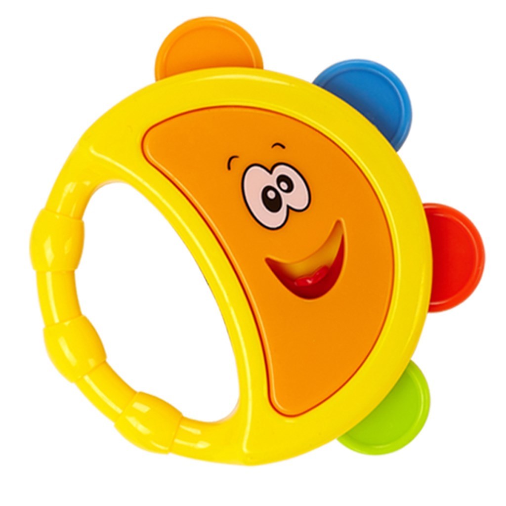 Barevné dětské chrastítko Bayo ve tvaru tamburíny. Díky svým veselým barvám a tvaru u dětí velmi oblíbené a stimuluje rozvoj jejich koordinace a smyslů. Je vyrobeno z vysoce kvalitních, bezpečných a odolných materiálů. Tvar usnadňuje držení a napomáhá rozvíjet jeho motorické schopnosti. Určeno pro děti od prvních dnů života. Délka hračky je 9 cm. Hračku udržujte v čistotě pomocí vhkého hadříku.