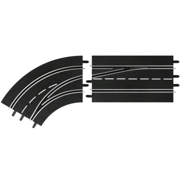 Předjíždění do zatáčky - levé, vnitřní pro autodráhy Digital 132 a Digital 124.Speciální díl pro autodráhy Digital 132 a Digital 124, který umožňuje přejetí do druhé dráhy. Přejížděcí manévr umožňuje přední tlačítko na ovladači rychlosti (30340), které přesune výhybku.Výhodou tohoto dílu je, že v...