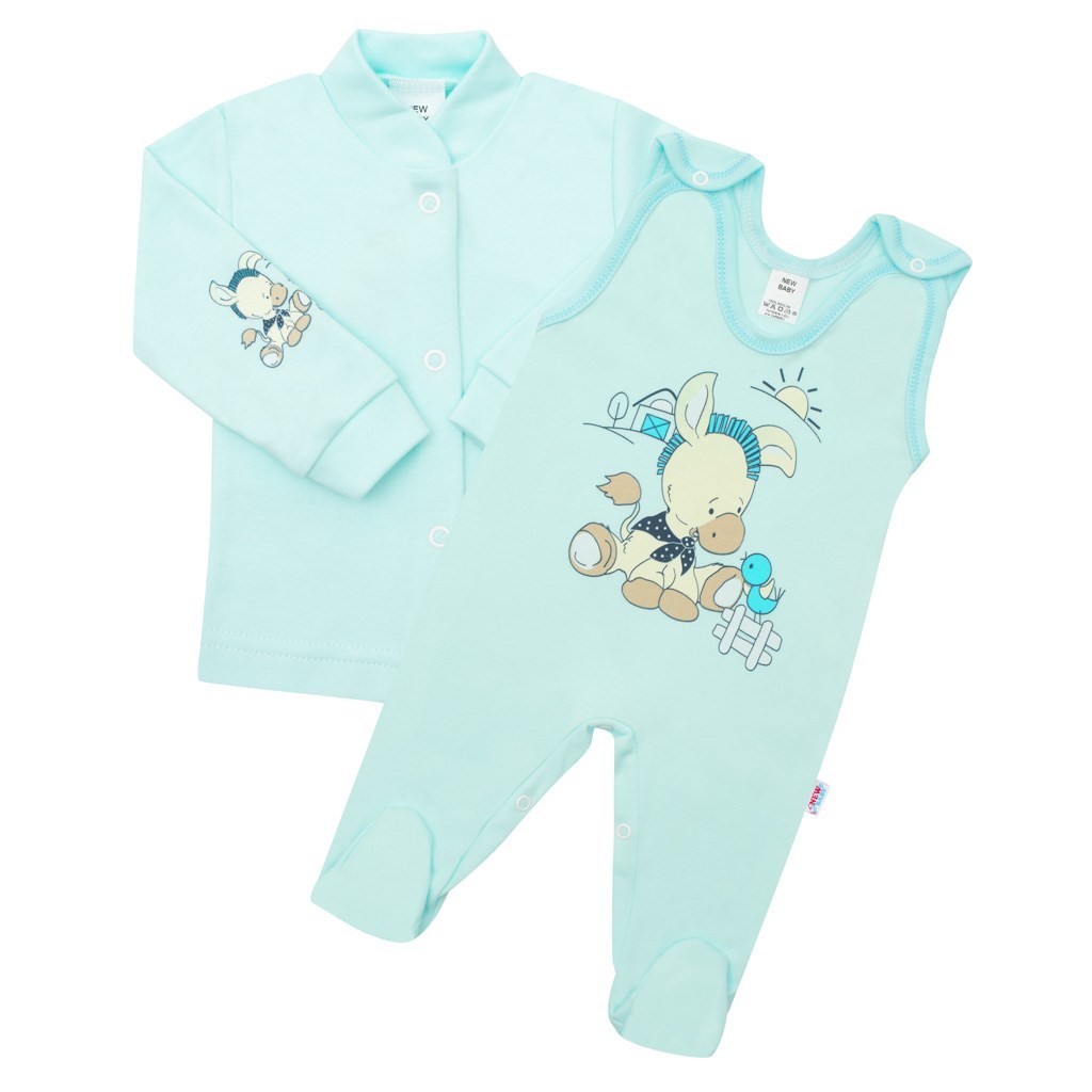 Bavlněná kojenecká soupravička New Baby Donkey pro miminka v krásné pastelové barvě. Soupravička obsahuje dupačky a kabátek, je vhodná pro miminka už od narození pro svou jemnost a měkkost. Dupačky jsou jednobarevné s obrázkem oslíka. Praktické zapínání na cvočky na ramínku a mezi nožičkami. Kabátek je jednobarevný a má praktické zapínání na cvočky po celé délce. Složení: 100% bavlna.
