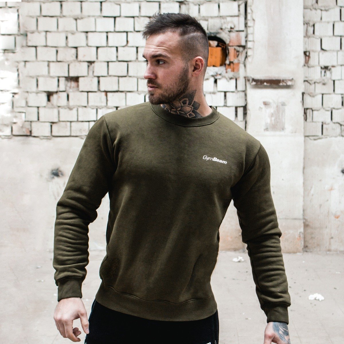 Mikina Basic Military Green White - GymBeam - Velikost S