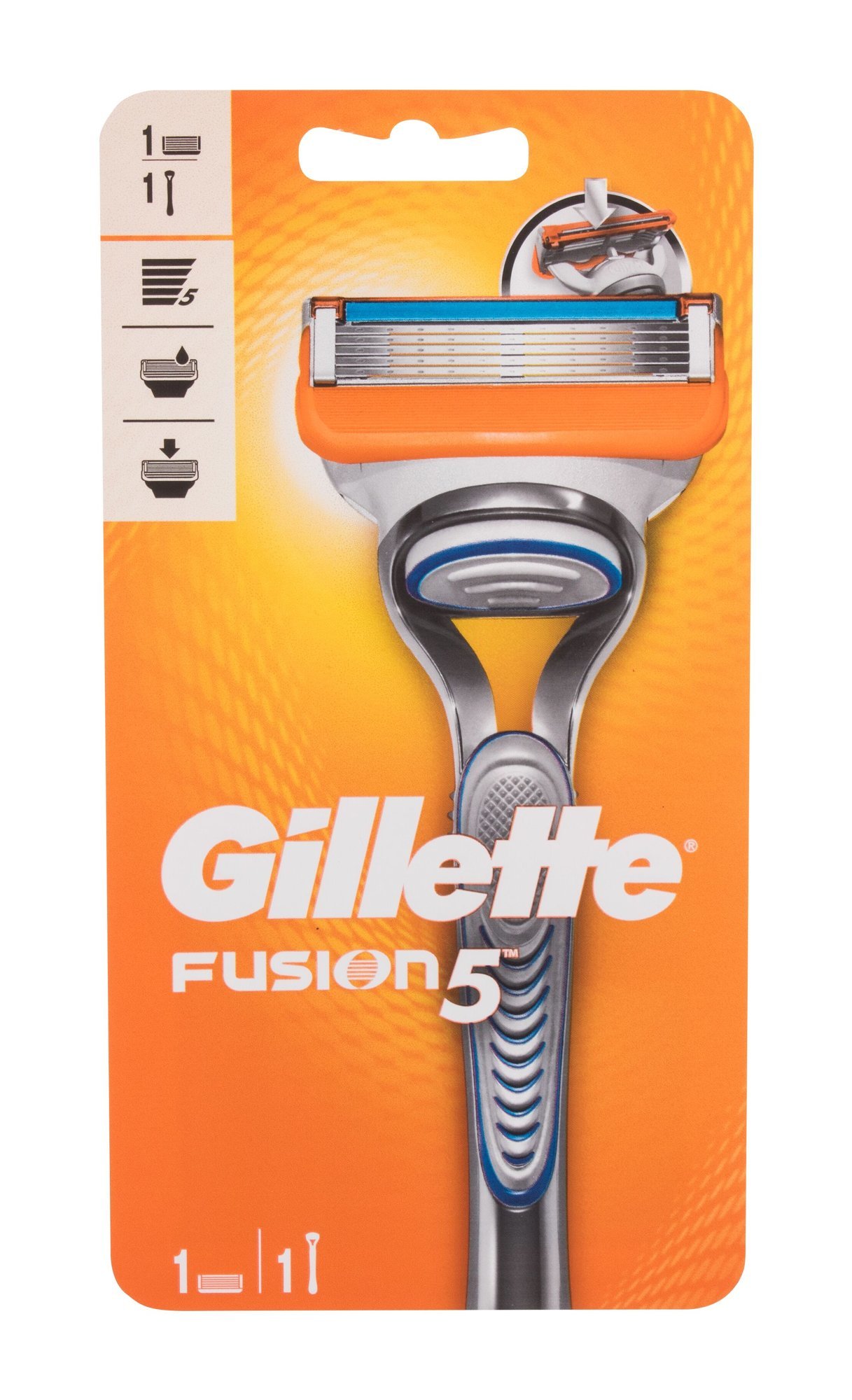Dosáhněte dokonalého oholení bez podráždění s holicím strojkem Gillette Fusion5. Hlavice strojku obsahuje 5 břitů se speciální povrchovou úpravou, která snižuje tření a pomáhá břitům lépe klouzat po pokožce.Udělejte z holení příjemnou aktivitu s Gillette Fusion5!zarovnávací břit na zadní straně...
