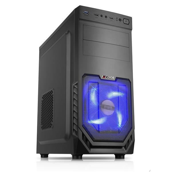 1stCOOL skříň JAZZ 2, Midi Tower, AU, USB 3.0, Blue FAN, bez zdroje, Black