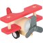 - Zestaw trzech drewnianych zabawek: jednopłatowiec, dwupłatowiec i rakieta z podwoziem.
