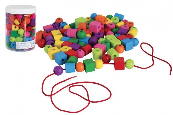 Drewniane maxiperły różnych kształtów ze sznurkiem do nawlekania w plastikowym pudełku. Produkt spełnia wymogi UE dotyczące bezpieczeństwa zabawek i jest odpowiedni dla dzieci od 3 lat. Wymiary produktu 10 x 14 x 10 cm. przeczytaj całość